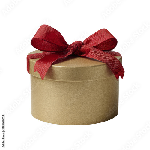 Elegant gold gift box with red ribbon on transparent background for celebrations and holidays