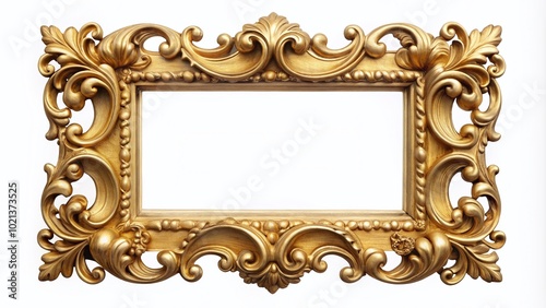 Elegant Gold Photo Frame Isolated on White Background for Decorative and Artistic Displays