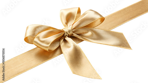 Elegant gold satin gift bow isolated cut out on PNG. AI GENERATED.