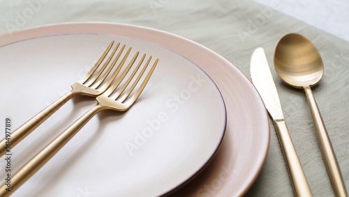 cutlery, gold, tableware, plate, dining, elegant, fork, knife, spoon, ceramic, table setting, eatery, fine dining, food, kitchen utensile, metallic, luxury, design, minimalist, sophisticated, presentation, culinary, aesthetic, detail, composition, clean, editorial, advertising, promotional