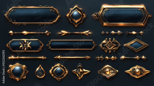 Elegant golden frames and dividers set for graphic design and decoration projects