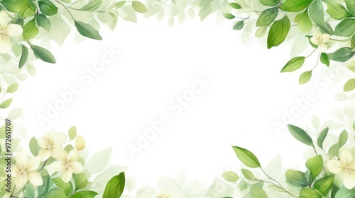 frame, flower, leafy, elegant, green, watercolor, background, nature, botanical, soft, gradient, leaf