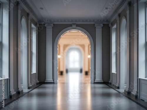 hallway, architecture, arch, interior, perspective, classic, bright, corridor, building, design, symmetry, elegant, pillar, window, light, structure, marble, construction, doorway, roomy, grandeur, formal, passage, historical, luxury, gallery, antechamber, institutional, estate, viewpoint