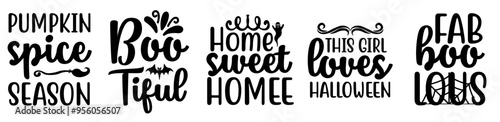 Elegant Halloween Bundle Typographic Emblems, Calligraphy Collection Vector Illustration for Packaging, Bookmark, Wrapping Paper