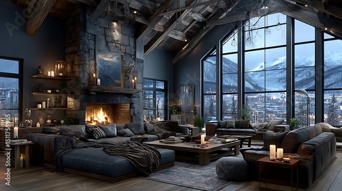 interior, modern, luxury, living, room, fireplace, panoramic, window, design, elegant, cosy, roomy, beautiful, stylish, contemporary, mountain, view, home, apartment, winter, landscape, decor, premium, house, furniture, chair, hotel, table, architecture, sofa, bed, living room, nobody, wood, indoor, inside, floor, bedchamber, wall, light