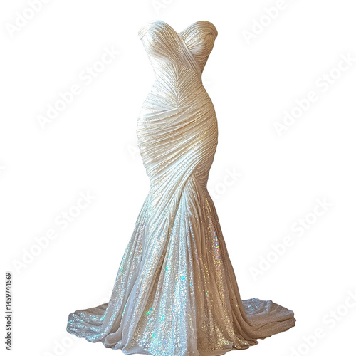 gown, dress, ivory, strapless, bodice, draped, evening, occasion, elegant, garment, sewing, design, fashion, textile, fabric, shimmering, mermaid, silhouette, attire, glamour, style, luxury, celebration, beauty, texture, fold, light, sparkle, sophisticated, crafted, tailor, clothing, classic, romantic, contemporary, hand-made, flowing, radiant, pristine, smooth, artistry, sheen, graceful