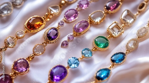 jewellery, gemstone, colours, luxurious, elegance, fashion, shine, bracelet, sparkle, accessory, beauty, detail, gold, design, craftsmanship, precious, opulent, treasure, necklace, arrangement, rich, vibrant, variety, soft, silk, texture, layout, hand-made, stylish, charme, sophisticated, display, luxury, artistic, chic, glamourous, composition, high-coloured, showcase, collectable, adornment, wearable, artisan, visual