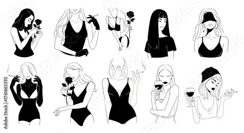 Elegant Ladies with Drinks and Flowers Vector Art Collection