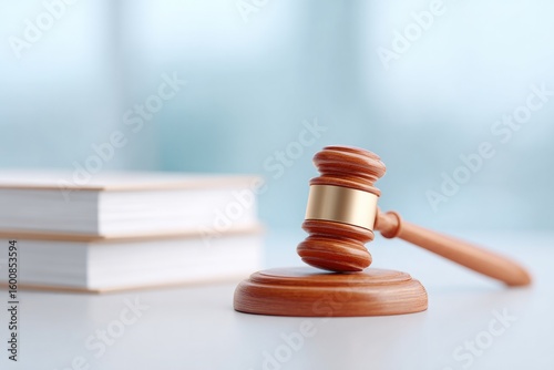 elegant law office desk with gavel law book and scales soft focus background minimalistic composition plenty of copy