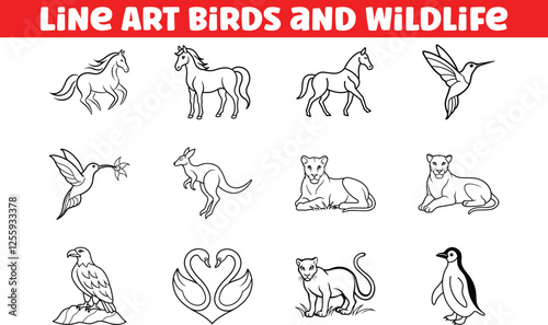 Elegant Line Art Birds, Wildlife, and Animals Collection