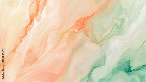 Elegant marble texture featuring a soft and delicate pattern in light peach and green tones