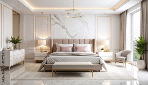 bedchamber, interior design, modern, elegant, luxury, beige, gold, upholstery, master bedroom, decor, furniture, bedding, white, marble, accent, home decor, contemporary, stylish, minimalist, comfortable, room, house, apartment, residential, design