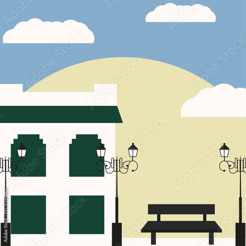 elegant, minimalism, poster, cover, moroccan, african, white, city, landscape, simple, minimal, flat, style, urban, africa, festival, vector, illustration, festive, background, home, building, green, print, art, film, international, morocco, tree branch, landmark, tour tourism, travel, summer, card