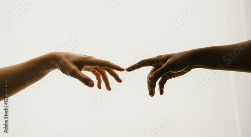 Elegant Minimalist Art of Two Hands Reaching for Each Other in a Soft Light Background.