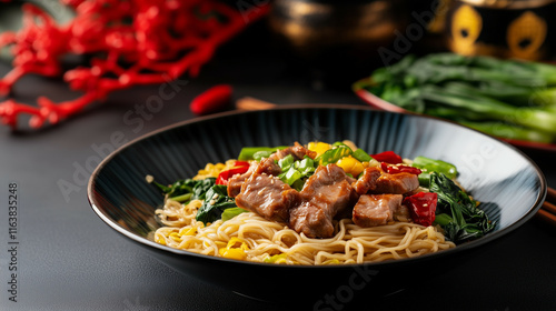 minimalist, noodle, plate, simple, red, festive, chinese, new, year, elegance, vitality, health, celebration, prosperity, cultural, food, design, seasonal, noodle, simplicity, wellness, vibrant, holiday, tradition, texture, dish, modern, harmony, savoury, asian, fresh, happiness, minimalism, culinary, authentic