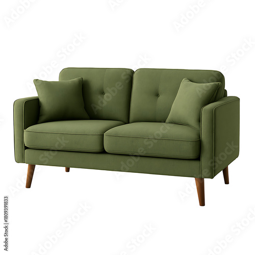 Elegant modern green fabric sofa with cushions isolated on white background perfect for living room interior design furniture comfort and contemporary home decor concept