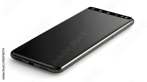 Elegant of modern smartphone with blank black screen , New realistic smartphone , modern black smartphone ,High quality smartphone image for web use on whit background