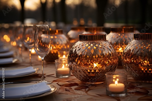table, candle, glasses, jar, sunset, light, setting, plate, silverware, napkin, ambience, decor, wood, glow, elegance, centrepiece, nature, dining, tablecloth, atmosphere, evening, luxury, warmth, gathering, celebration, plate, goggles, candle, setting, decoration