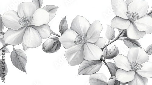 Elegant pencil drawing of blooming flowers with detailed petals and leaves