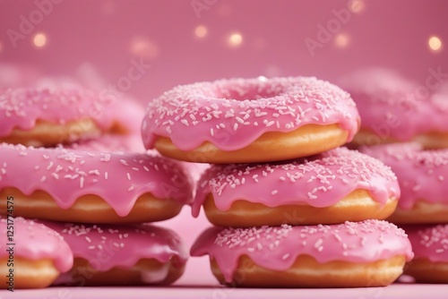 Elegant Pink Glazed Donuts Topped with Colorful Sprinkles. Generative AI