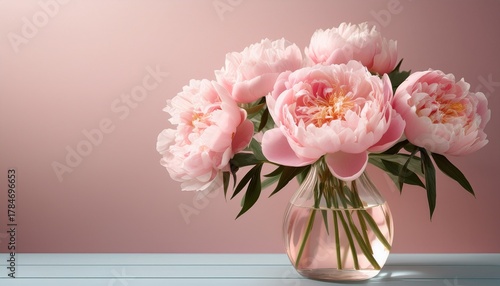 Elegant Pink Peonies In Glass Vase With Soft Pastel Background