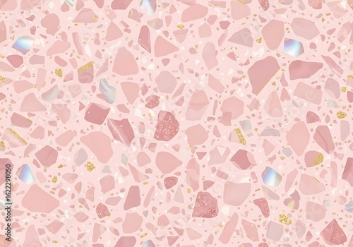 Elegant pink terrazzo pattern background with gold and iridescent accents
