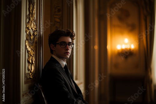 portrait, elegant, soft light, thoughtful, interior, luxurious, youth, vintage, chic, warm tones, classical, contemplative, refined, artistic, character, ambience, timeless, young adult, indoor, fashion, style, expression, art, elegance, sophistication