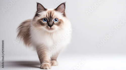 cat, ragdoll, kitten, fluffy, pet, felino, blue eye, cute, adorable, white background, purebred, long-haired, elegant, portrait, animal, domestic, furry, gentle, beautiful, whisker, lovely, sitting, isolated, charming, breed, aristocratic, majestic, photogenic, luxurious, pure, peaceful, studio, calm, premium, closeup, stylish, sophisticated