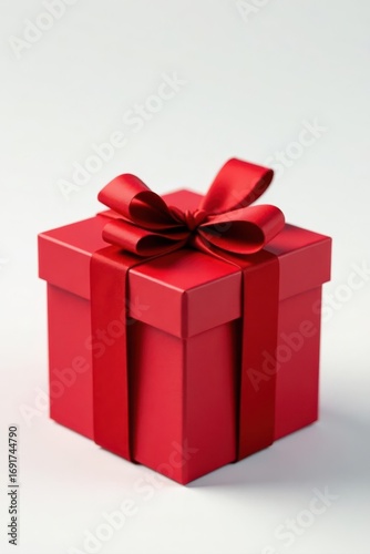 Elegant red gift box, bow, pristine white background, box, festive, gift wrapping