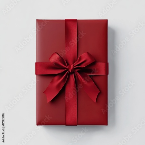 Elegant red gift box with a matching ribbon on a light background. Black Friday gifting concept.