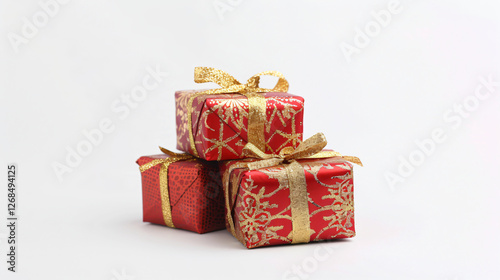 Elegant red gift boxes isolated on white background
