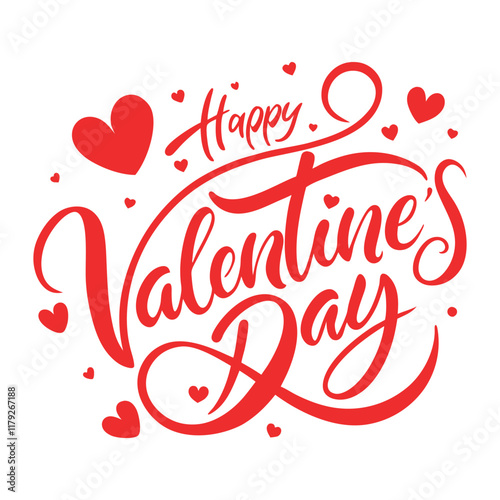 Elegant Red Valentine's Day Calligraphy with Hearts Design