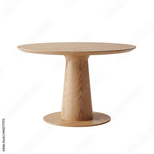 table, wood, round, dining, furniture, pedestal, modern, wooden, light, natural, design, interior, home, decor, contemporary, simple, clean, elegant, minimalist, domestic, object, studio, empty, surface, product, isolated, cut-out, nobody, render