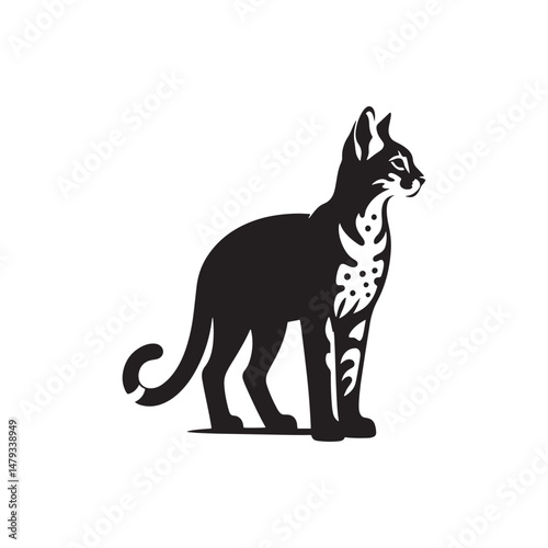 Elegant Savannah Cat Silhouette Vector Design – Exotic Hybrid Feline Outline Illustration Featuring Graceful Posture, Spotted Coat Detail, and Sleek Form for Artistic, Decorative, and Branding Use.