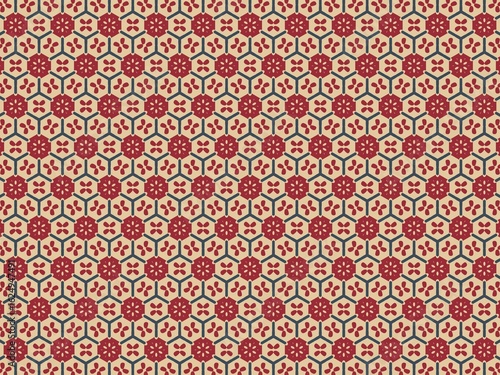 seamless, pattern, geometric, abstract, background, texture, floral, hexagon, red, blue, colours, shape, modern, contemporary, minimal, simple, clean, design, textile, wallpaper, print, surface, illustration, graphic, vector, art, artwork, image, digital, element, template, motif, ornament, decoration, stylish, elegant, trendy, creative, aesthetic, minimalist, repeat, tile, intricate, detailed, japanese, asian, traditional