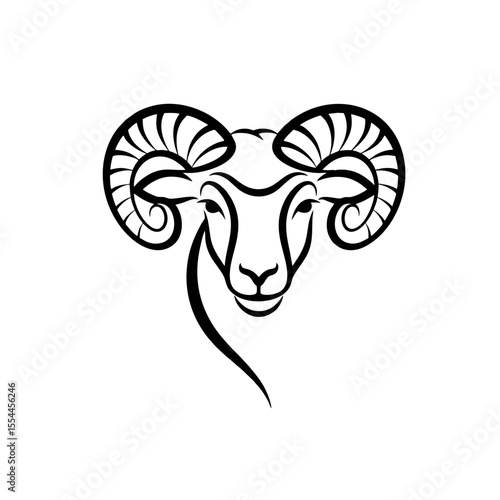 Elegant Sheep Head Logo, Abstract Line Art Forming a Sheep's Face With Spiral Horns, Black Stroke