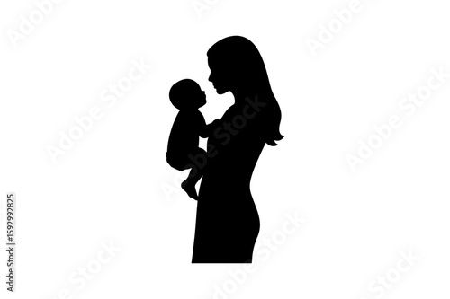 Elegant Silhouette Illustration of a Mother Tenderly Holding Her Baby Perfect for Family Love and Maternity Designs