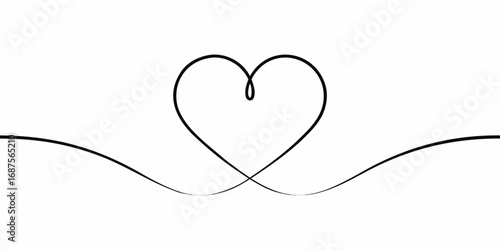 Elegant single line drawing of a heart shape with flowing curves on a white background