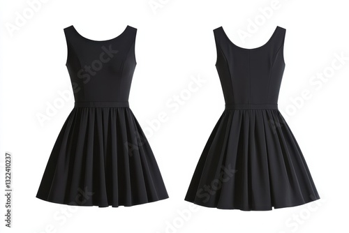 sleeveless, dress, black, front, view, back, fashion, style, clothing, wear, elegant, isolated, minimalist, design, chic, versatile, evening, party, casual attire, skirt, waistline, timeless, trendy, garment, fabric, colours, silhouette, modern, simple, elegance, clean, line, classic, clothes rack, essential, stylish, outfit, essential, fit, seasonal, comfortable, collection
