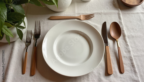 table, setting, plate, white, utensil, wooden, elegant, dining, minimalistic, tableware, flatware, no people, clean, aesthetic, simplicity, modern, napkin, natural, arrangement, kitchen, mealtime, formal, rustic, cosy, soft light, home, minimalist, polished, warmth, stylish, relaxed, organic, refined, everyday, serene, decor, lifestyle, meal, balanced, inviting, casual attire, tasteful, timeless