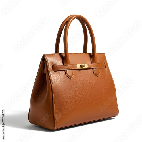 pursed, bag, leather, tan, brown, luxury, designer, fashion, accessory, woman, lady, elegant, stylish, chic, sophisticated, classic, structured, tote, satchel, clasp, buckle, textured, embossed, premium, high-quality, hand-made, craftsmanship, travel bag, gift, new, modern, vintage, minimalist, studio shot, isolated, white background