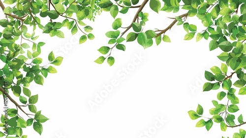 Elegant Tree Branch Frame with Green Leaves Isolated on White Background