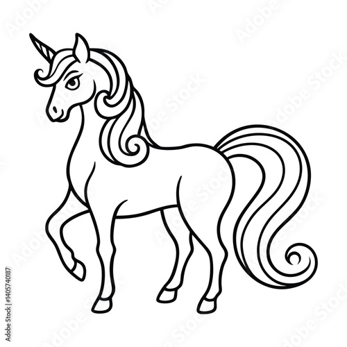 Elegant Unicorn Outline Minimalist Mythical Creature Drawing Line Art Vector Illustration