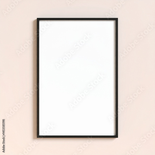Elegant vertical black frame on a pastel-colored wall. Frame mockup