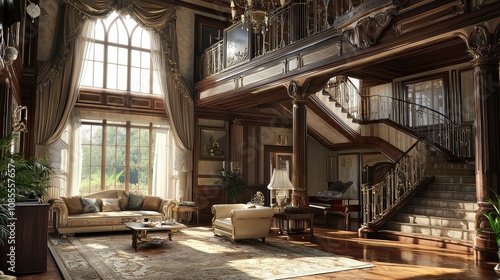 victorian, interior, house, high, ceiling, living, room, staircase, ornate, decor, furniture, wood, design, light, window, luxury, style, art, classic, space, soft, tone, plant, ambience, architecture, rich, detail, natural, sunlight, comfortable, seating, area, carpeting, elegant, timeless, aesthetic, historical, beauty, charme, welcoming, relaxing, detail, craftsmanship, grand, opulent, visual, setting
