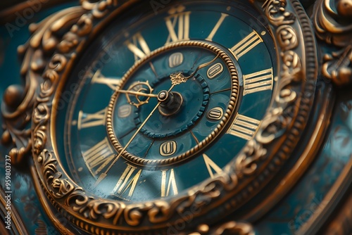 clock, vintage, antique, decorative, design, blue, bronze, roman numerals, horologe, ornate, detail, mechanical, wall clock, home decor, collectable, craftsmanship, classic, retro, stylish, artistic, interior design, old-fashioned, unique, handcraft, traditional, clock dial, watch, ornamentation, heritage, history, precision, beautiful, exquisite, refined, nostalgic, art deco, collectable, masterpiece, showpiece, exhibition, display, craft, artistry, mechanism, clockwork