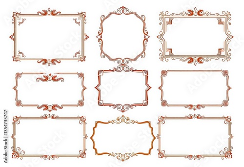 Elegant vintage frames, borders, labels, monograms, calligraphic elements Isolated white background, vignette, copy space