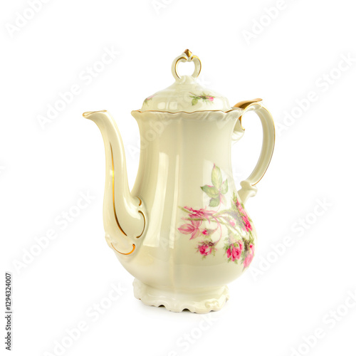 Elegant vintage porcelain coffee pot isolated on white.