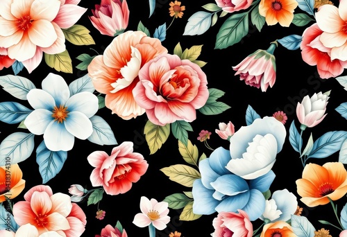 Elegant watercolor floral seamless pattern featuring ornate flowers and leaves, ideal for backgrounds, repeat, floral