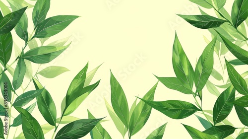 Elegant watercolor illustration of green leaves on a light yellow background. Perfect for nature-themed designs and botanical projects.